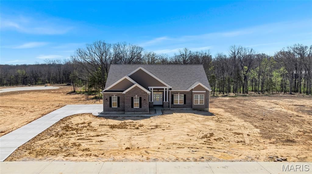 Now Under Roof - Move-In Ready - SOD COMING SOON! Why settle for less when you can have it all? The Sycamore Model at The Estates at Schaper Farms offers the ideal blend of space, quality, and setting on a 3.05-acre walk-out lot in the sought-after Wentzville School District. This thoughtfully designed 3 bedroom, 2 bath ranch features 2,097 sq ft of open-concept living with upscale finishes throughout.The exterior showcases a striking brick and board-and-batten facade with a side-entry oversized 3-car garage (30' x 24'). Inside, enjoy 10-foot ceilings, 8-foot doors, and transom windows along the back that fill the home with natural light. The kitchen is designed for both function and style, offering 42 staggered cabinets, quartz countertops, a large island, walk-in pantry, soft-close doors, dovetail drawers, and stainless steel appliances including a double oven, ceramic cooktop, cabinet hood, and microwave drawer. LVP flooring runs throughout the main living areas with ceramic tile in the baths.The private primary suite features dual vanities, a soaking tub, and a walk-in shower. The walk-out lower level includes a slider to the patio, providing easy backyard access and flexibility for future finish or outdoor living. Exceptional quality, generous acreage, and a serene setting-this home truly delivers. Dare to compare.Join us Fridays 11-5:30 or Saturdays and Sundays 11:00 am-2:00 pm at the OPEN HOUSE and experience this property in person!
